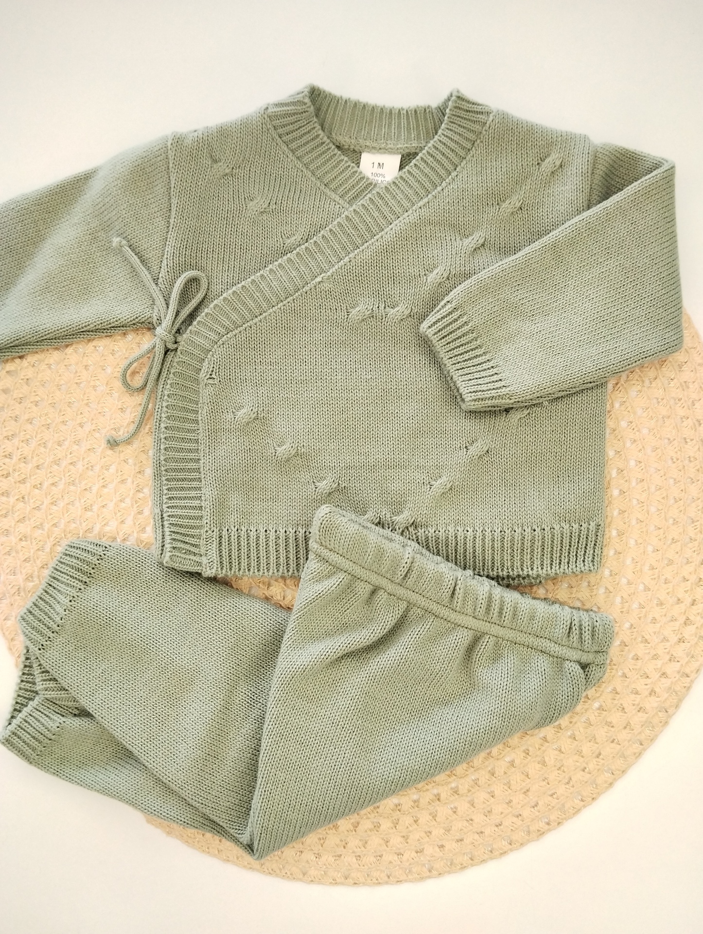 Conjunto de Calça s/ pé + Casaco apertar de lado.. Fecha com atilhos.