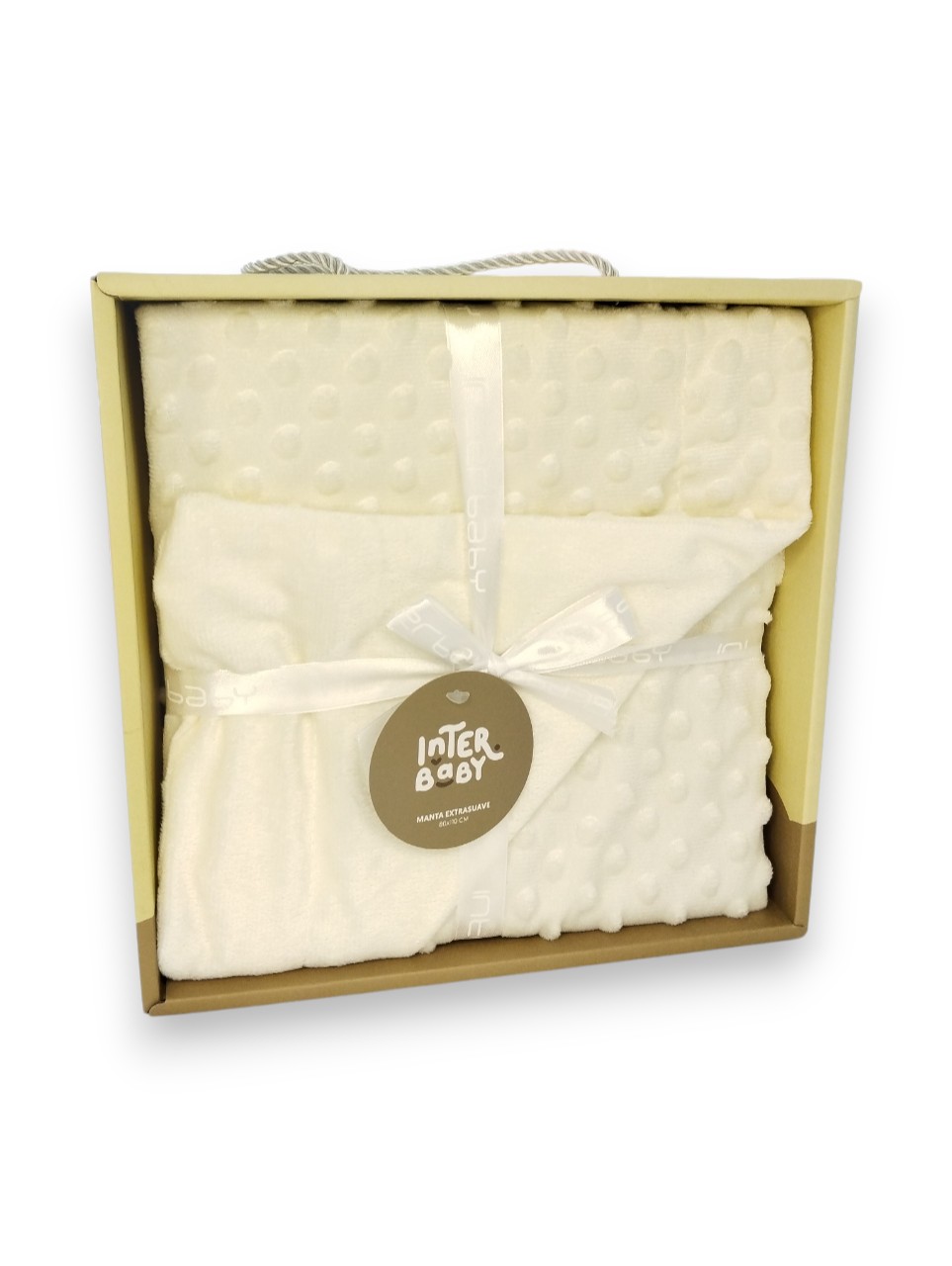 Manta para bebé com toque aveludado e acabamento em bolha. Muito macia e quente.